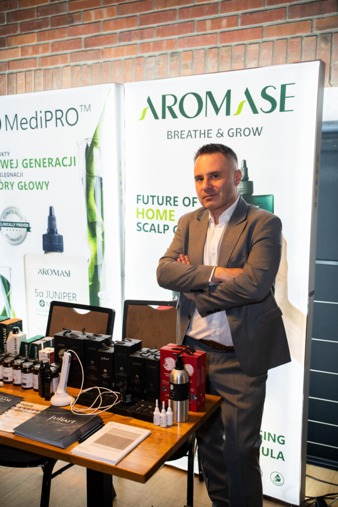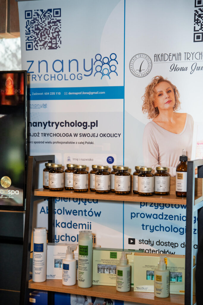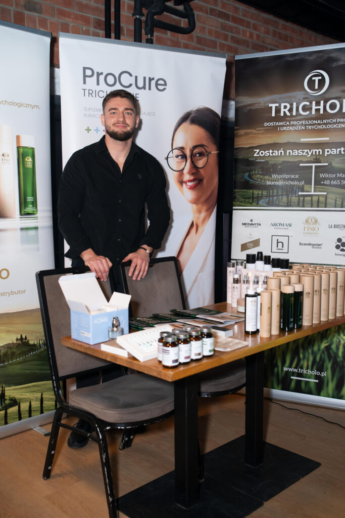 W dalszej części dnia odbyły się prezentacje partnerów wydarzenia, takich jak Polpharma, Dr.Art, OMNiBiOTiC oraz Moroccanoil. Wśród wielu znakomitych marek nie zabrakło również firm związanych z trychologią, co dodatkowo podkreśliło kompleksowy charakter wydarzenia i jego silne zakorzenienie w różnych segmentach branży beauty.